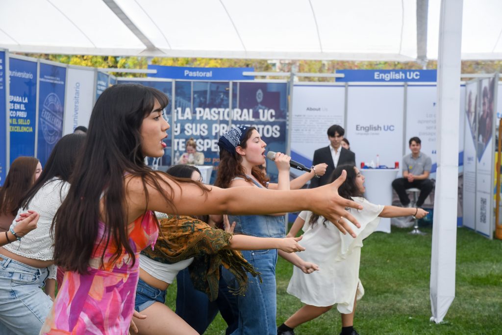 Prácticamente desde el inicio hasta el cierre del evento, ocurrieron de manera continua un total de 240 actividades organizadas por carreras de pregrado en diversos puntos del campus: laboratorios, talleres, conversatorios, exposiciones, sesiones prácticas, y otras dinámicas a cargo de unidades de servicio, entre las que destacó la charla ofrecida por Microsoft – invitado especial de esta versión – “Reinventando el trabajo moderno de la mano de M365 Copilot” dictada por Héctor Monje, AI Workforce Director for Spanish South America Microsoft Chile. Además, el escenario principal de la Expo ofreció alrededor de 30 presentaciones artísticas, concursos y juegos, como la intervención de los talleres de danza árabe y danza urbana de la Dirección de Asuntos Estudiantiles, Kpop Dance UC, Hip Hop UC, las actuaciones de compañía Dionisia, compañía Alicanto y el grupo folclórico Almas UC, entre otras intervenciones a cargo de estudiantes de diferentes carreras y unidades de la universidad.